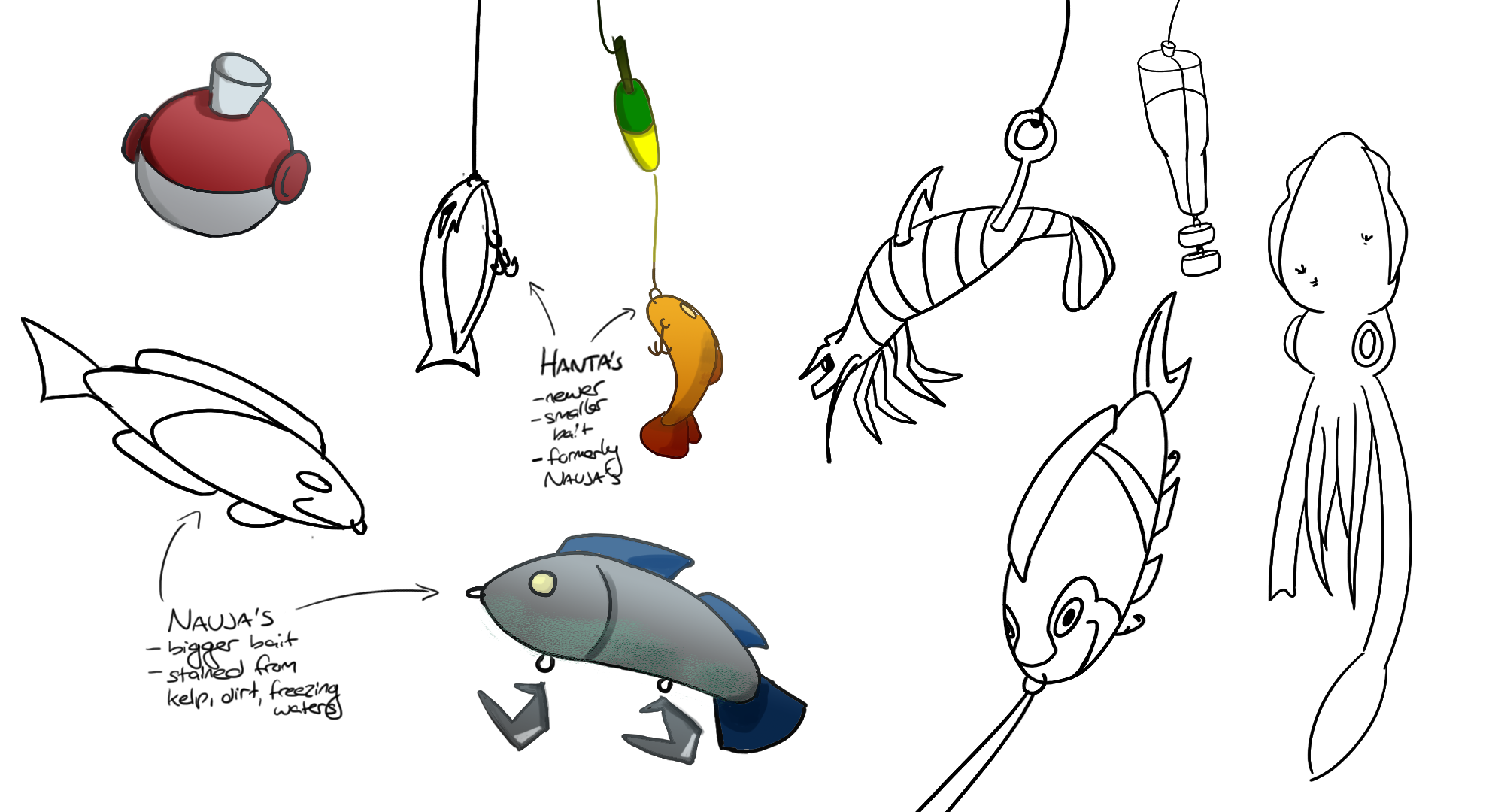 Early concept exploration for baits and lures for Nauja and Hanta.